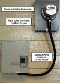 A GenerLink meter base transfer switch is installed behind the electric meter of the home using the existing breaker panel. This eliminates both the cost of professional services and the inconvenience of rewiring, and homeowners usually do not need to be present during the installation. Operation is also simple, requiring only the turning off of appliances at the breaker, plugging in and starting the generator, and turning appliances back on. This makes it one of the easiest and safest ways to use a portable generator when the electricity goes out.